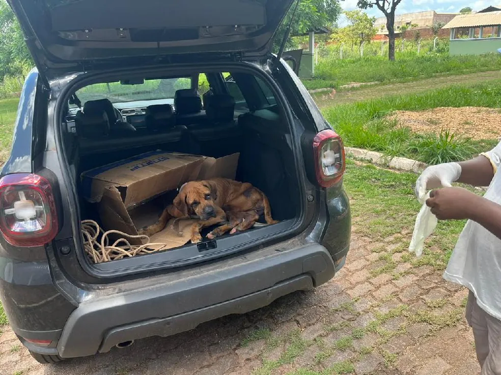 Resgatada pela Polícia Civil e pelo Centro de Zoonoses, a cadela Duquesa vivia sob condições de abandono em Várzea Grande, região metropolitana de Cuiabá. Os donos do animal já foram identificados e devem responder a inquérito por maus-tratos.